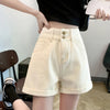 Crèmekleurige denimshort met hoge taille en rechte pijpen, afgewerkt met omgeslagen zoom voor een minimalistische casual look. Comfortabel en stijlvol voor zomerse dagen.