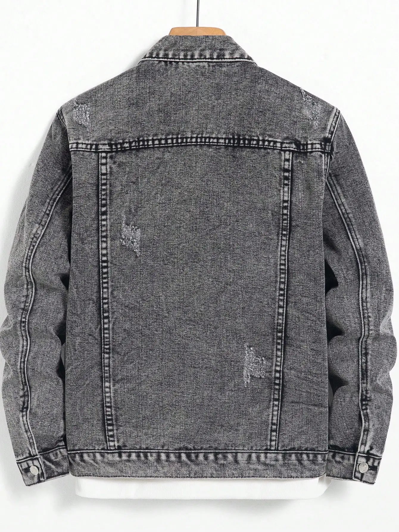 Zwarte denimlook jas met distressed details voor een stoere en moderne uitstraling. Deze regular fit jas met klassieke kraag is een must-have voor casual lente en herfstoutfits.