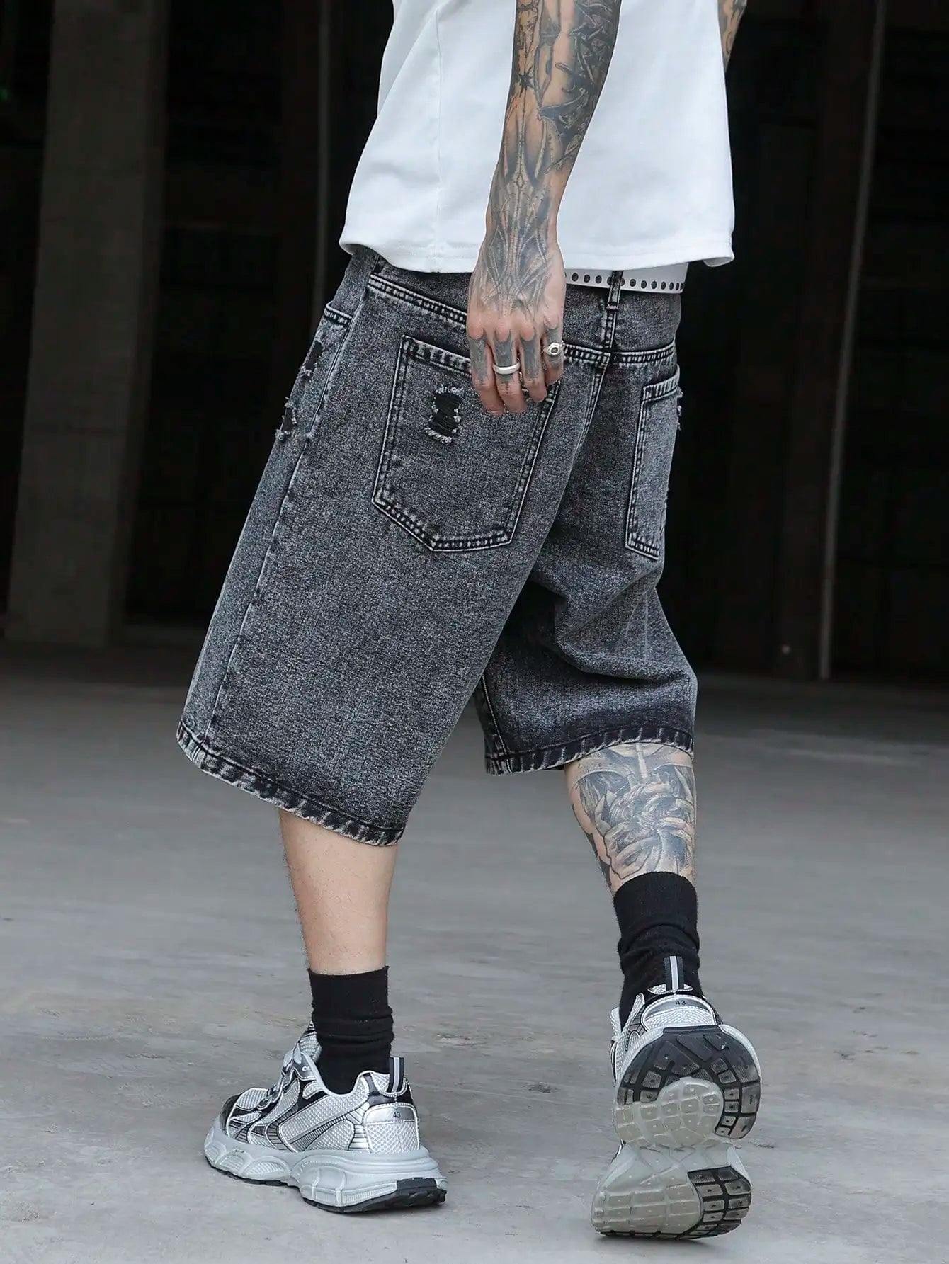Grijze denim short voor heren met een losse pasvorm en middelhoge taille.