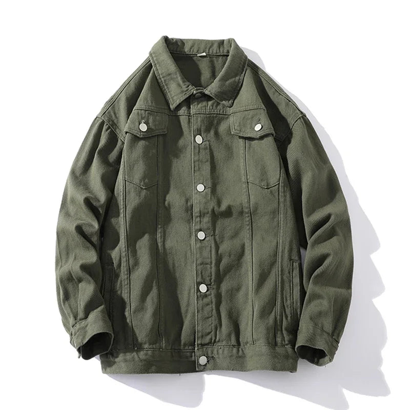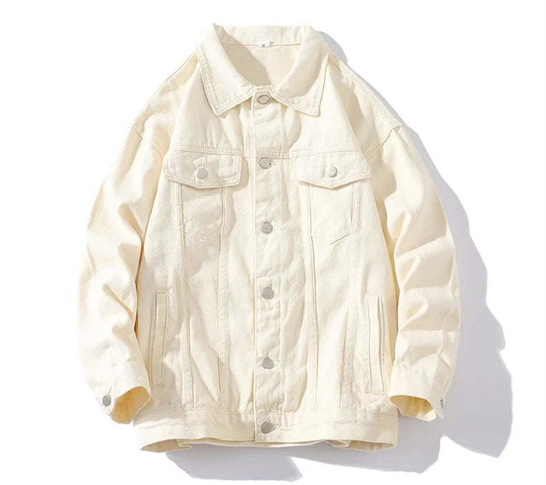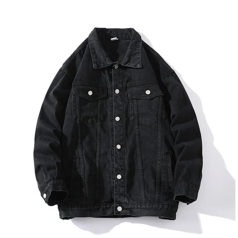 Essentiële overiszed denimjas met klassieke knoopsluiting en rechte snit. Tijdloos ontwerp dat perfect past bij elke casual outfit in de lente of herfst.