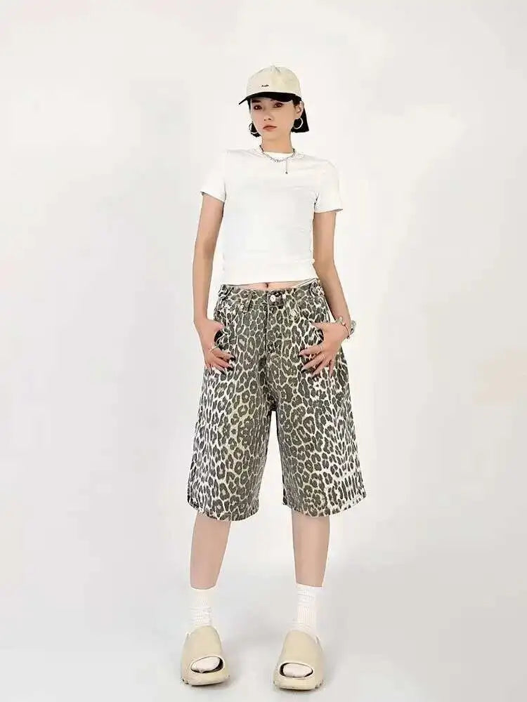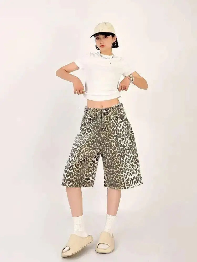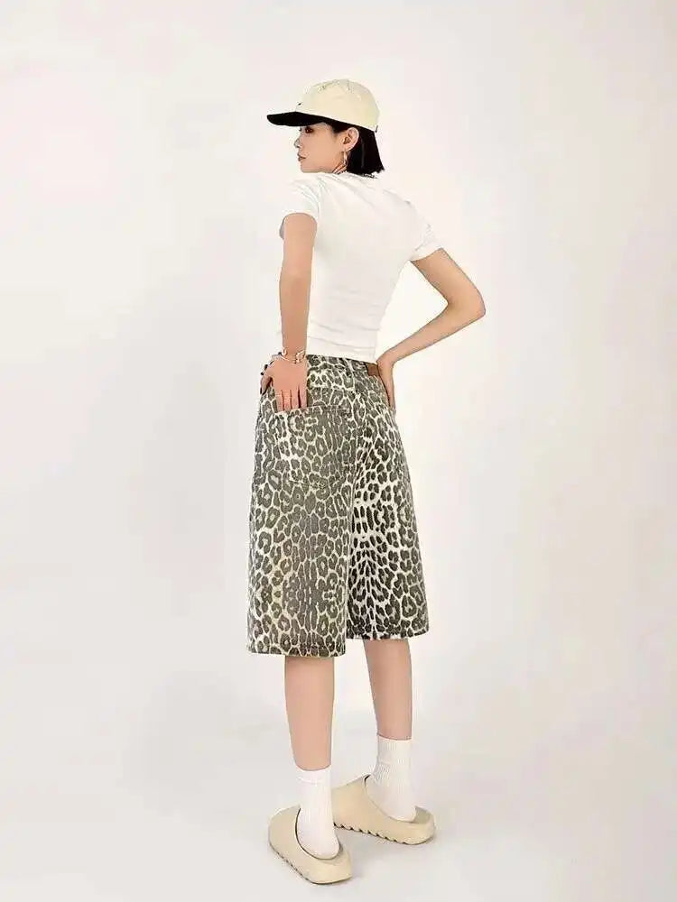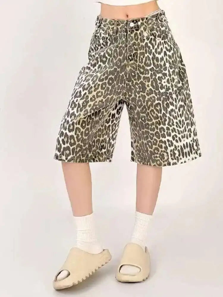 Leopardprint denimshort met knielengte voor een gedurfde casual look. Hoog getailleerd model met regular fit, ideaal voor zomerse dagen.