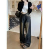 Deze high waist jeans in losse straight fit komt in een washed black denim met lichte vervagingen aan de voorkant, wat zorgt voor een uitgesproken retro vibe.