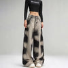 Wide leg jeans met een opvallend zwart tie-dye effect. De extreem wijde pijpen en de unieke spray paint look geven de broek een uitgesproken streetwear karakter met vintage invloeden.